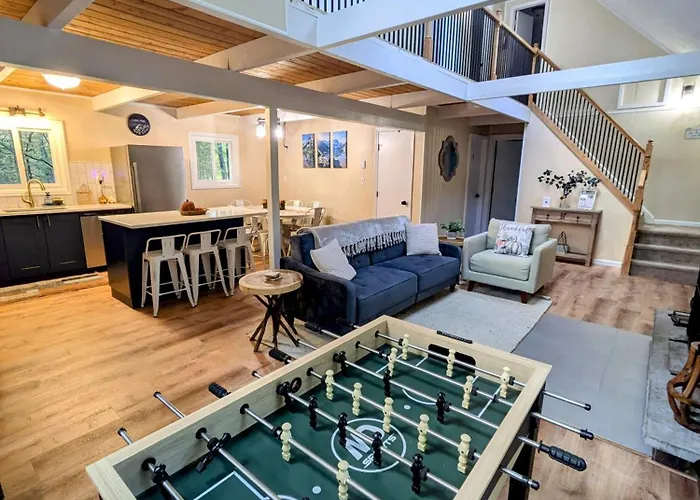 **Welcome to Crown Jewel Cottage Gouldsboro**, an enchanting retreat nestled in the picturesque landscapes of Eastern Pennsylvania. Just 40 kilometers from Wilkes-Barre/Scranton International Airport, this charming getaway is ideally positioned for both relaxation and adventure. Surrounded by lush greenery and serene woodlands, guests will find themselves in a tranquil oasis away from the hustle and bustle of everyday life.